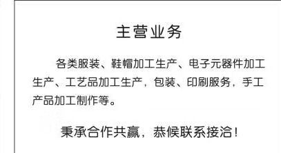 本公司有大量监狱资源,致力于为客户节省降低厂房、水电、员工食宿、五险、劳务等成本费用。提供大面积多批量生产场地,军事化生产管理团队,高效的生产模式,专业的质检技术指导,流失率极低的生产人员。承接 箱包、鞋帽、各类服装、手工活来料代加工