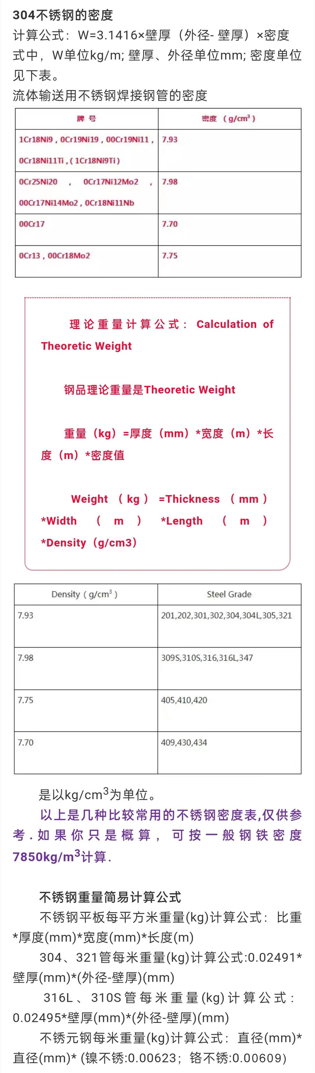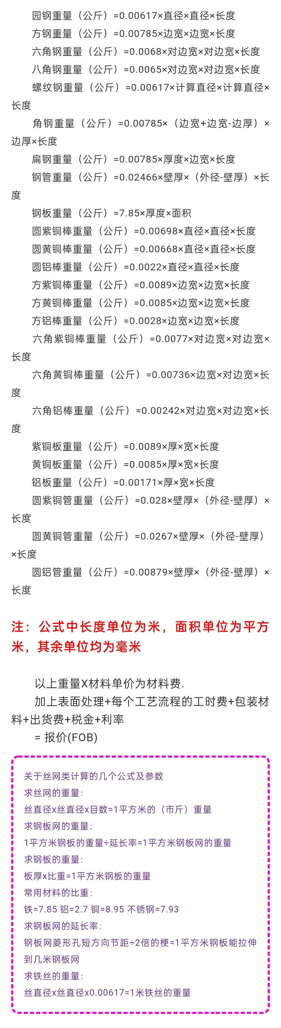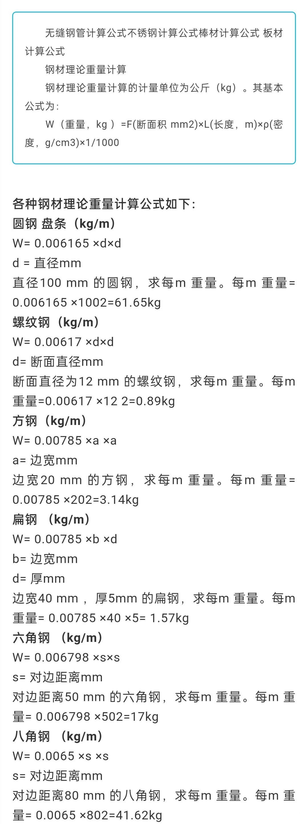 常用金属重量计算公式