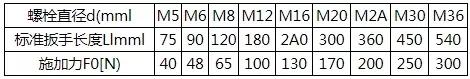 注:对于设计图纸有明确力矩要求的,应按图纸要求执行。