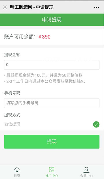 在“推广中心”可以查看到“佣金金额,关注好友数量,累计金额”!点击“申请提现”,满足提现标准即可提交申请,1到3个工作日,佣金会发放到提现申请人的个人微信号“零钱钱包”中(发放成功会有微信付款消息提醒,未实名认证的微信号申请发放不成功)。